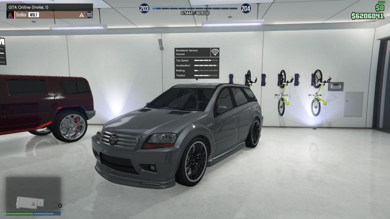 The Serrano can be stored in any of your Properties/Garages as a Personal Vehicle. It can be customized at Los Santos Customs. You can also modify it in a Vehicle Workshop inside one of your owned properties.