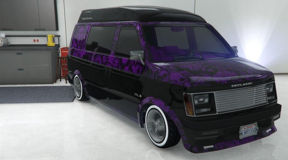 The Moonbeam Custom is a Custom Vehicle, which can be obtained by first buying the standard Declasse Moonbeam for $32,500, and then converting it to this custom variant in the Benny's Original Motor Works for an extra cost of $370,000.