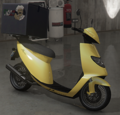 The design of the Pegassi Pizza Boy is based on a real life Piaggio Zip; 2007 Peugeot V Clic; Kymco Agility 50.