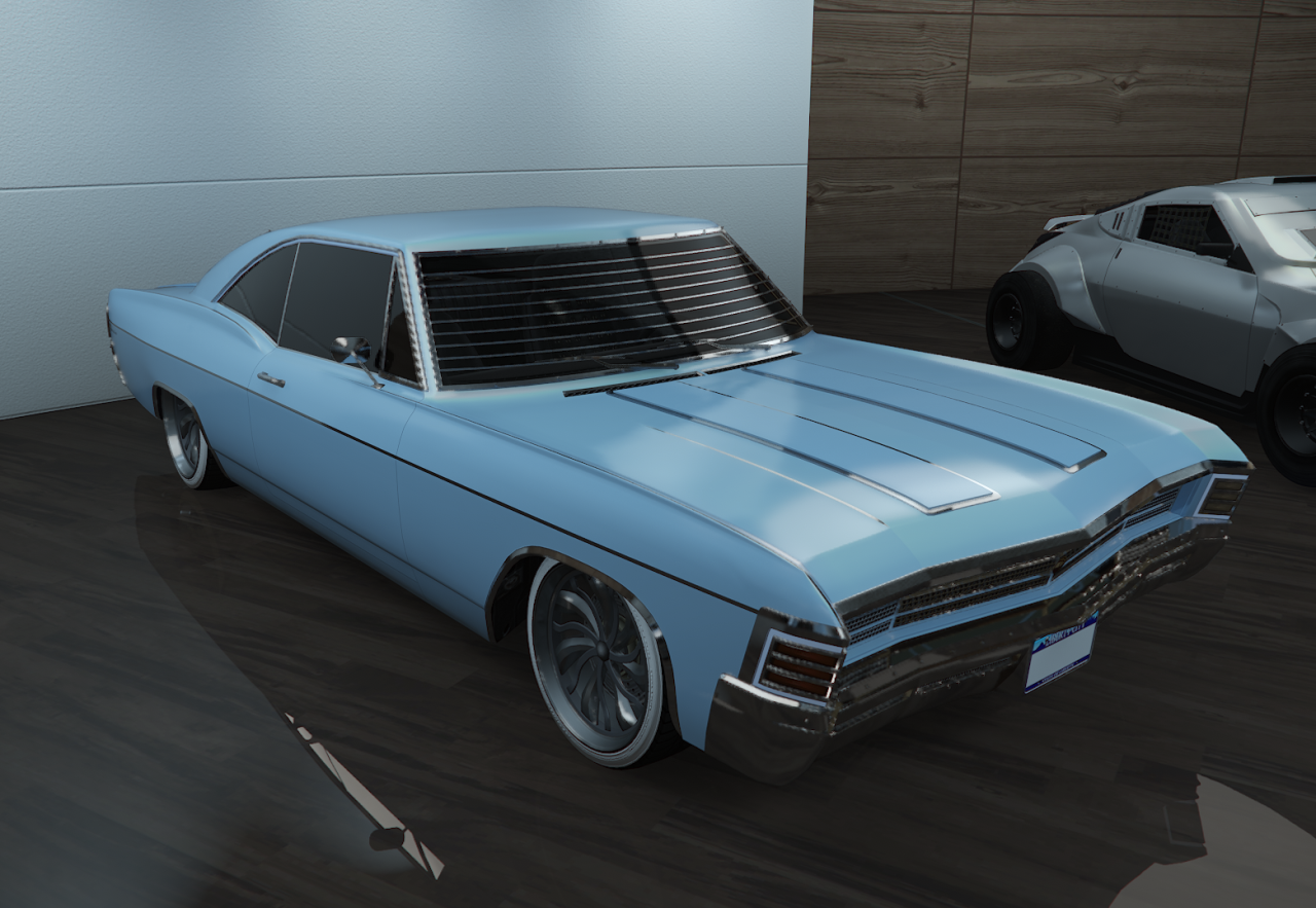 The Declasse Impaler (Arena) is an armored weaponized Muscle Car featured in GTA Online on PS5, Xbox Series X|S, PC, PS4 and Xbox One, added to the game as part of the 1.46 Arena War update on December 11, 2018.
