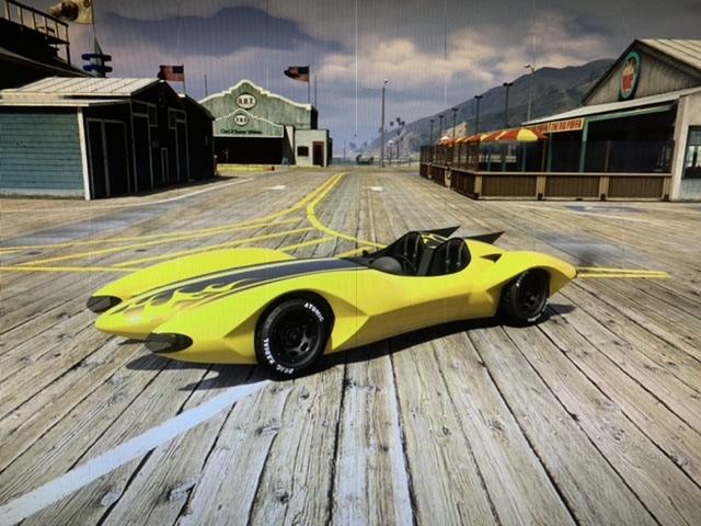 The design of the Declasse Scramjet is based on a real life 1960s Anime series Speed Racer, Mach 5, Alfa Romeo 33/2 Coupé Speciale.