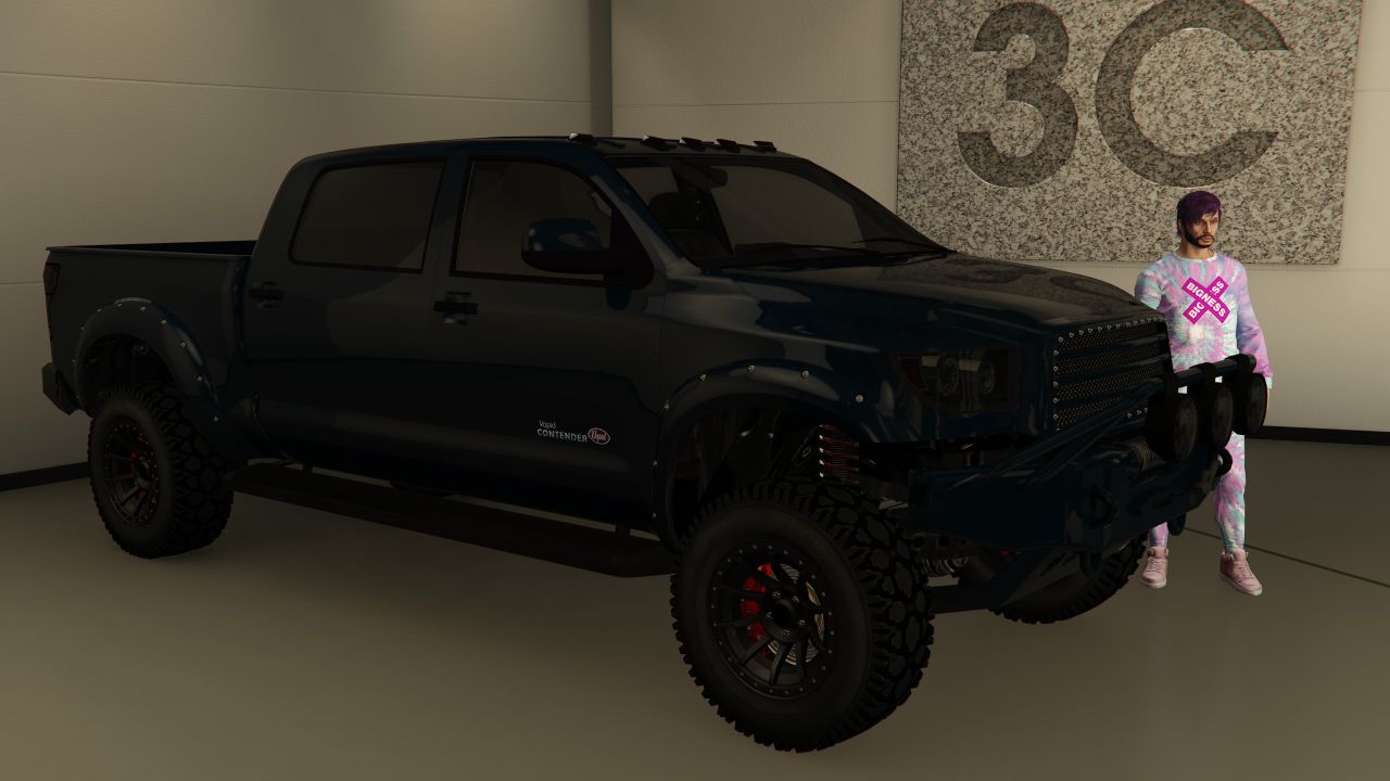 The Contender can be stored in any of your Properties/Garages as a Personal Vehicle. It can be customized at Los Santos Customs. You can also modify it in a Vehicle Workshop inside one of your owned properties.