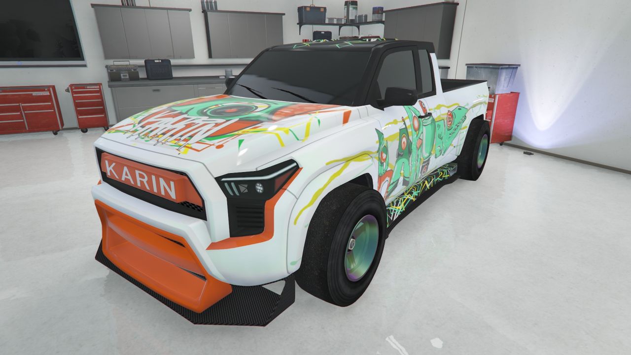 We thought they couldn't do it. After the Karin engineers overstepped the mark with the last Everon model, unleashing a street truck so aggressive that it defied every known rule of automotive engineering and civic responsibility, they went ahead and outdid themselves. The RS takes the small-dick, big-ego energy of the last iteration, drops it down so close to the asphalt you'll need a barrel of silicone lube to get over the bump in your garage door, and amplifies its fuck-you styling to a level as obnoxious as the guy blasting reactionary country music on Vespucci Beach.