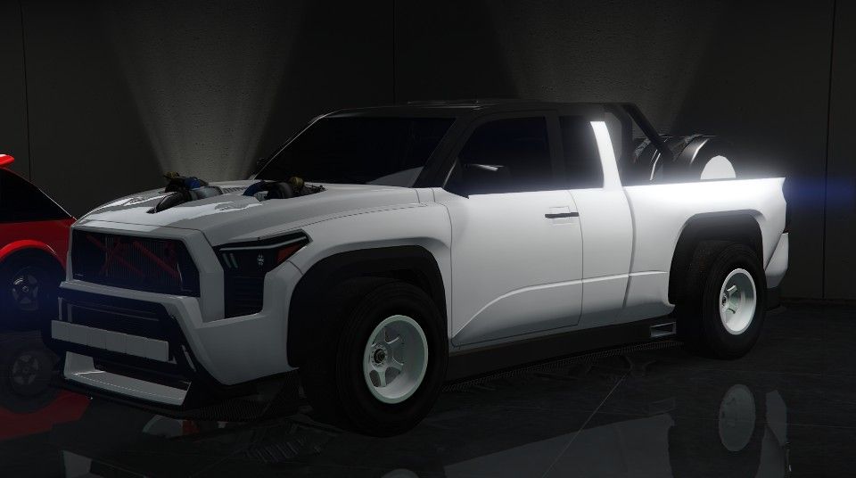 The design of the Karin Everon RS is based on a real life 2024 Toyota Tacoma X-Runner Concept.